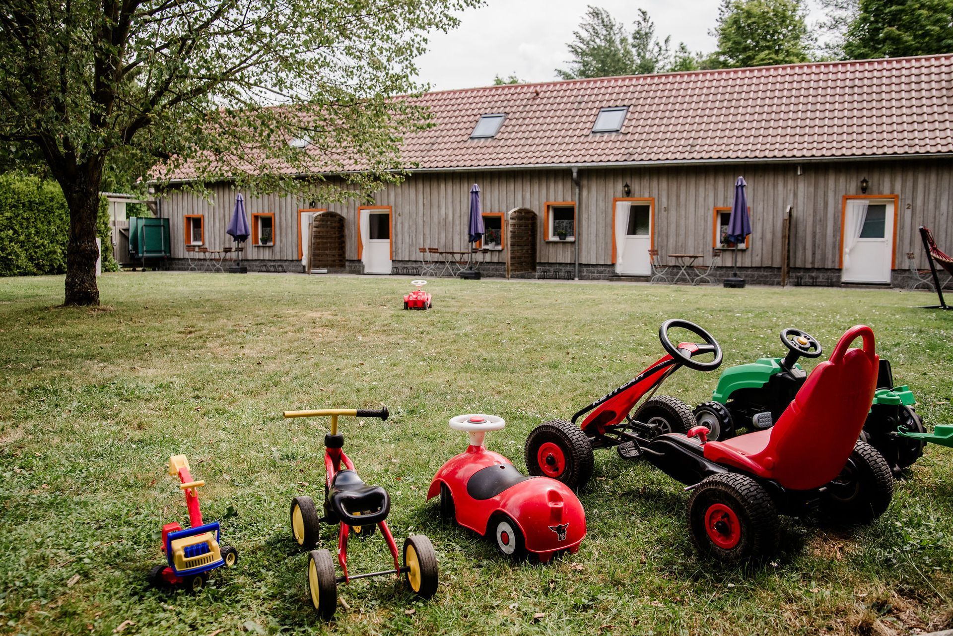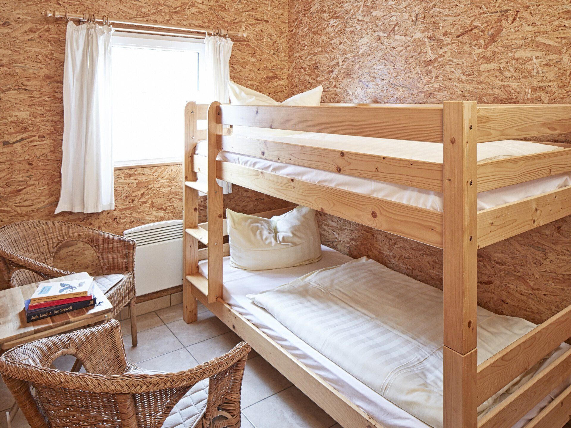 Im unteren Bereich jeder Wohnung befindet sich ein Wohnzimmer mit Küche und ein Bad, im oberen Bereich ein Schlafraum. Der Schlafbereich ist über eine steile Treppe erreichbar und mit einem Doppelbett und jeweils einem bzw. zwei Einzelbetten ausgestattet. Die Wohnungen haben in etwa den gleichen Grundriss und unterscheiden sich lediglich in der Größe. Jede Wohnung hat eine eigene kleine Terrasse. Der Garten mit Spielplatz, Wiese und Grillecke wird gemeinsam genutzt.